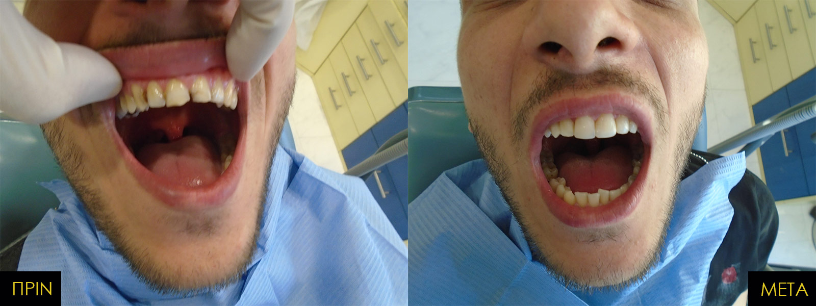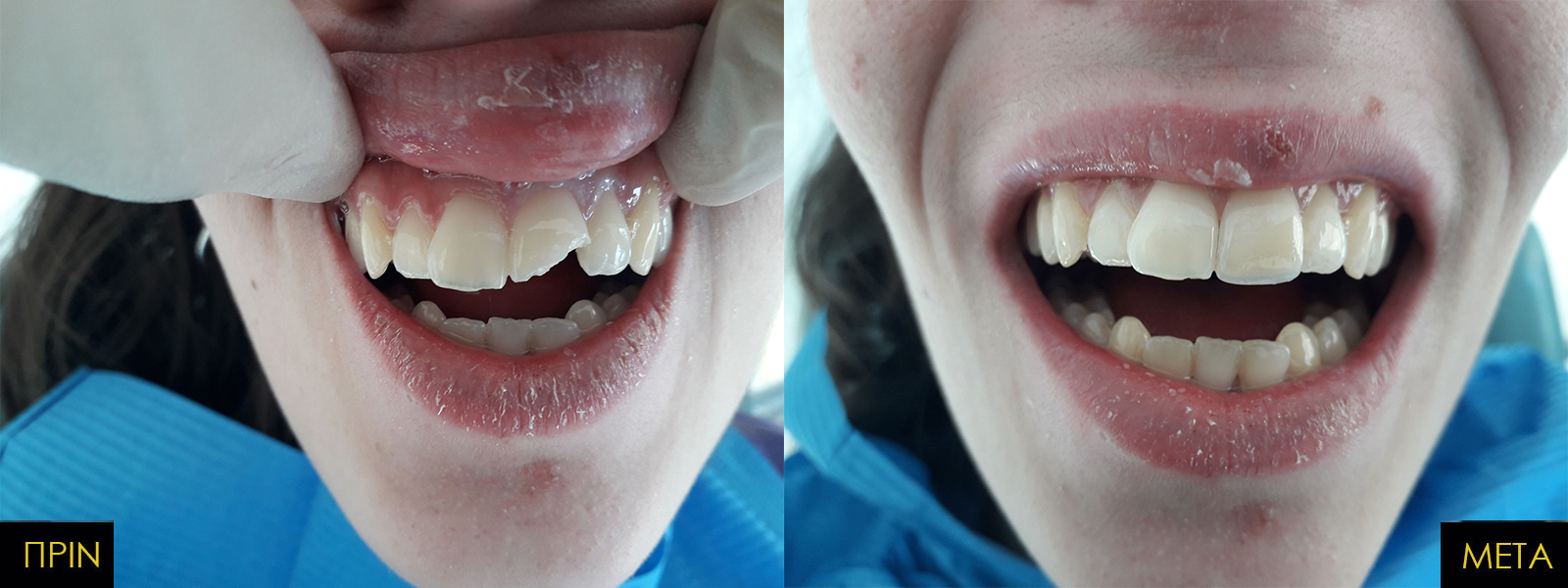 Δύο όψεις ρητίνης στους πάνω κεντρικούς τομείς και κλείσιμο διαστήματος