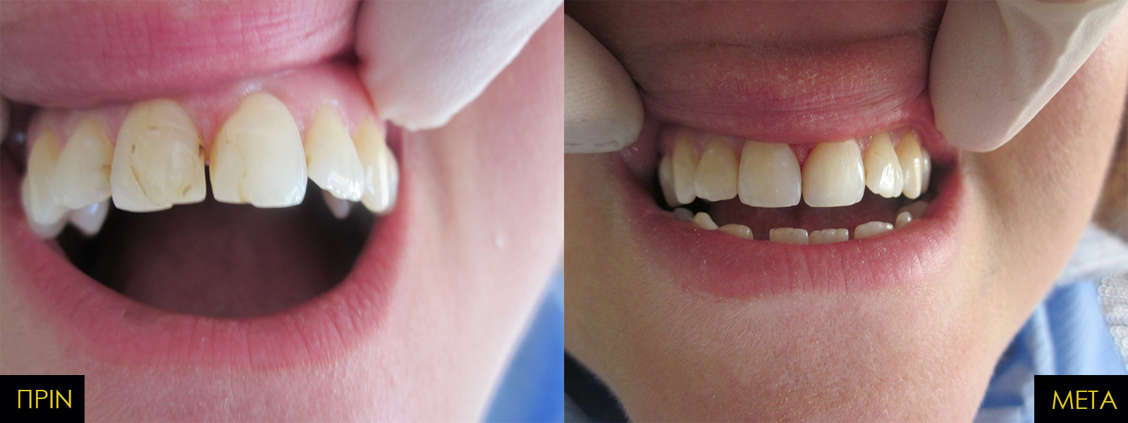 Λίφτινγκ δοντιών με έξι όψεις ρητίνης στα άνω πρόσθια δόντια