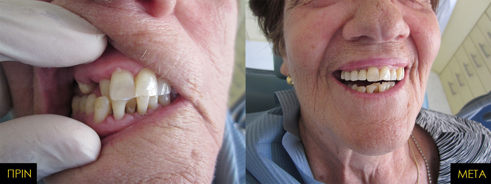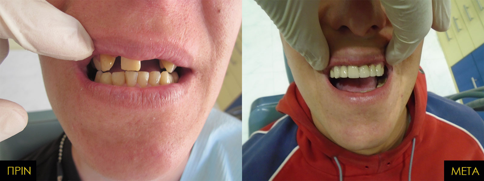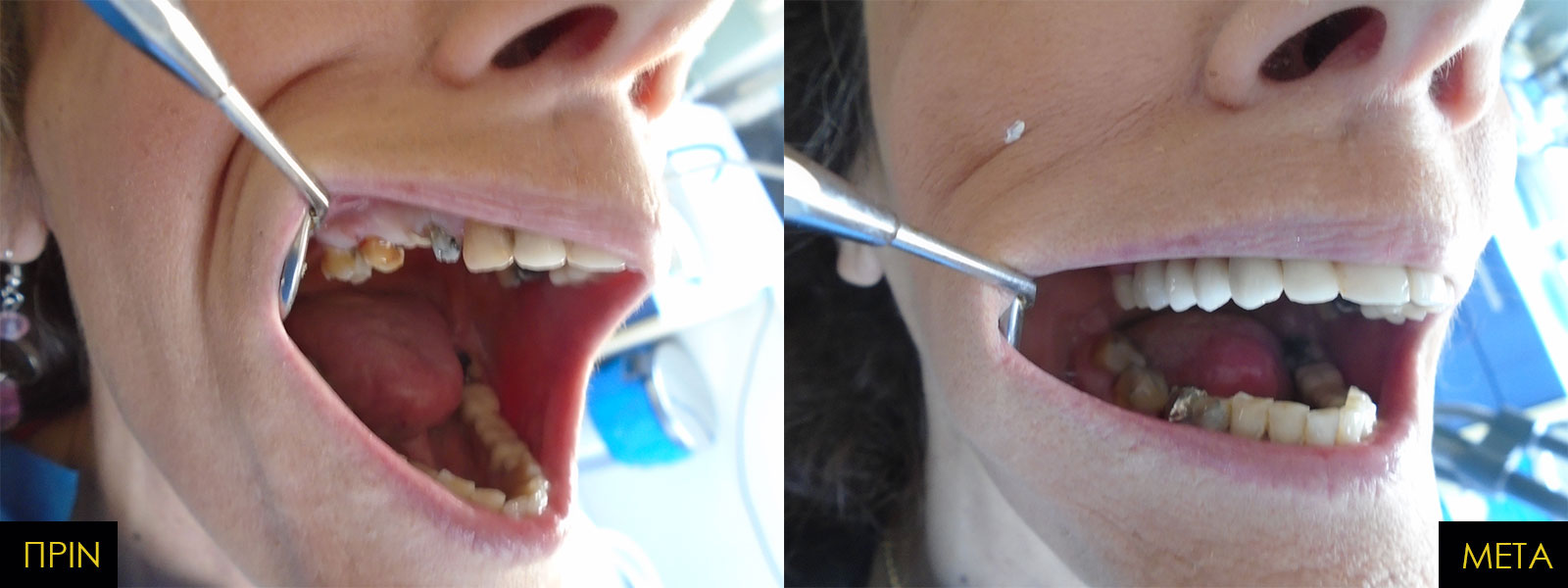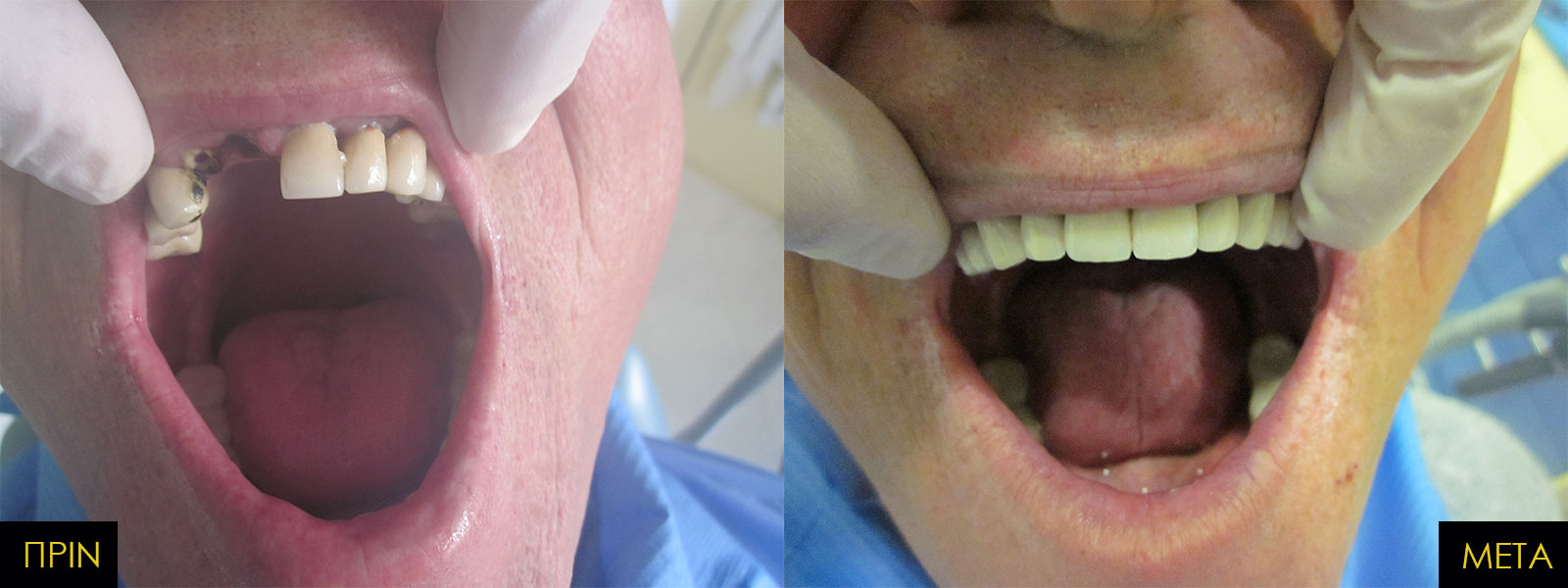 Full arch αποκατάσταση πάνω με γέφυρα μεταλλοπορσελάνης
