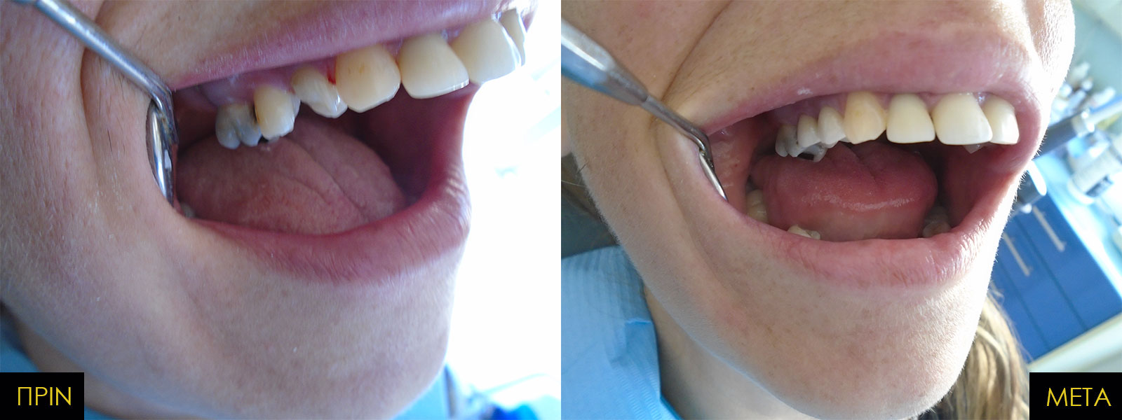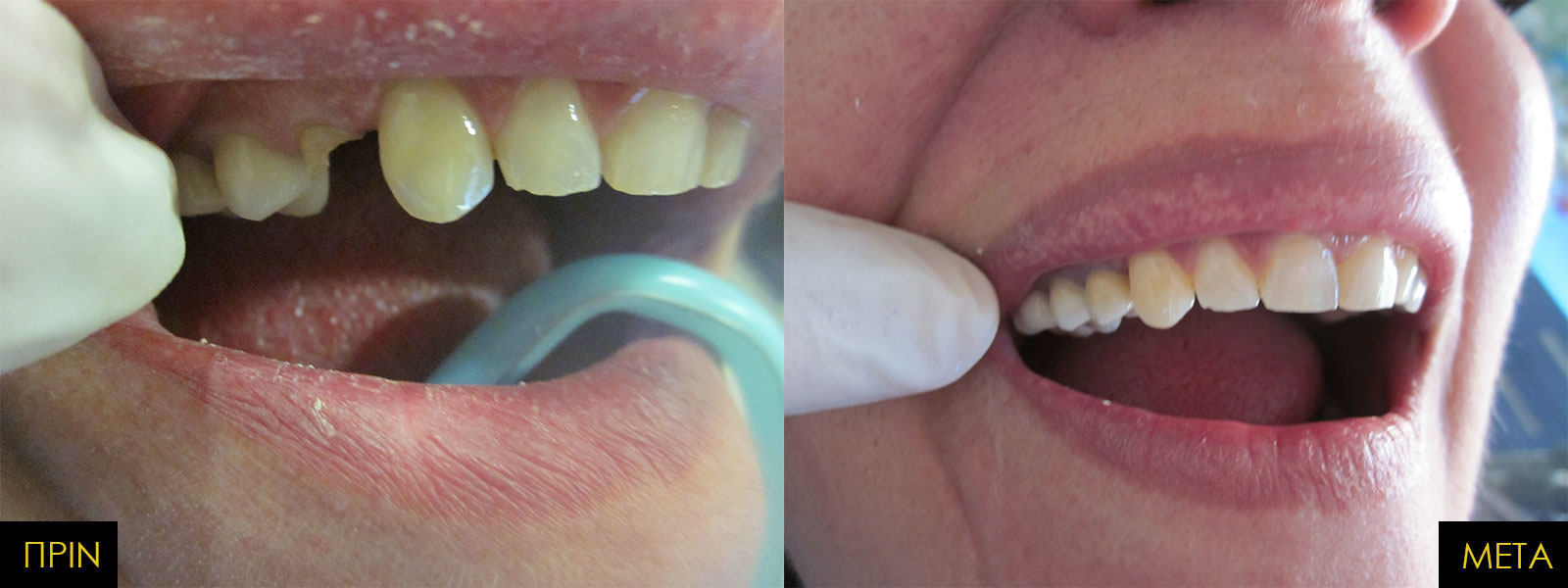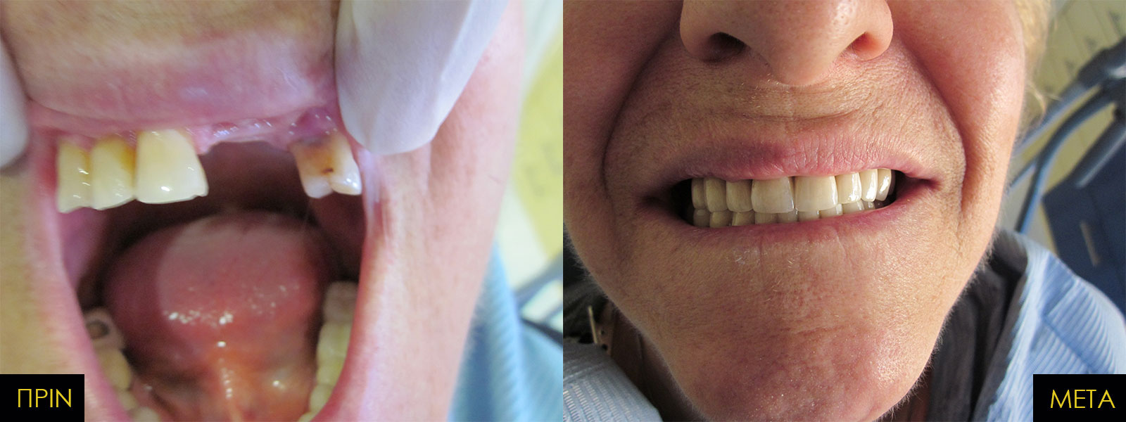 Ανασύσταση με 2 άξονες και 2 στεφάνες μεταλλοπορσελάνης στους 2 προγομφίους