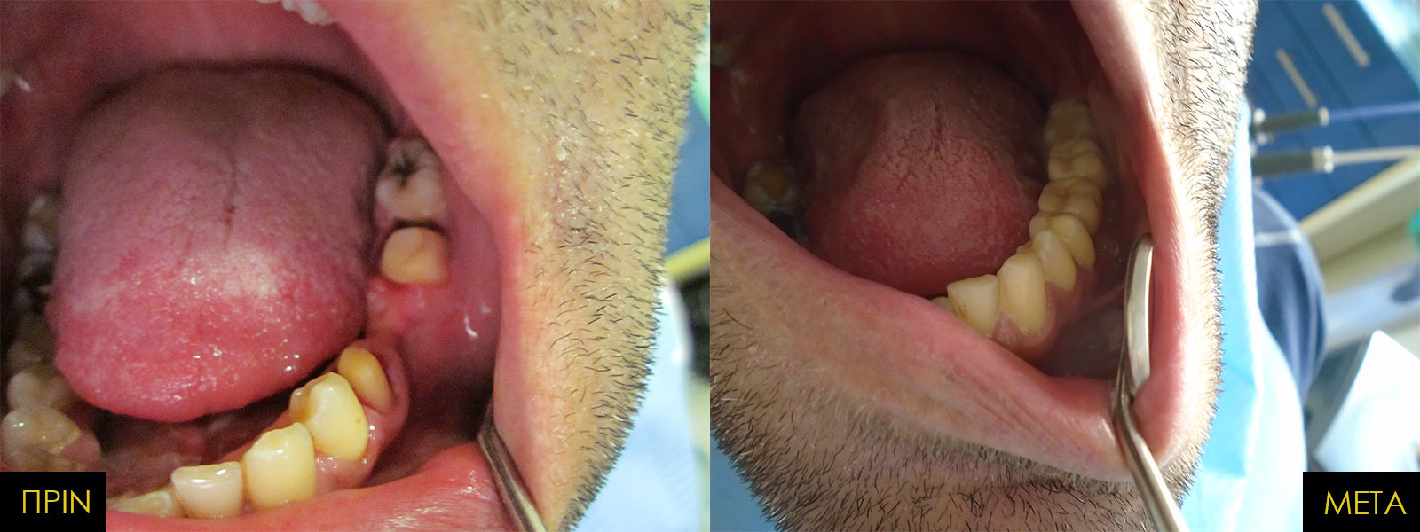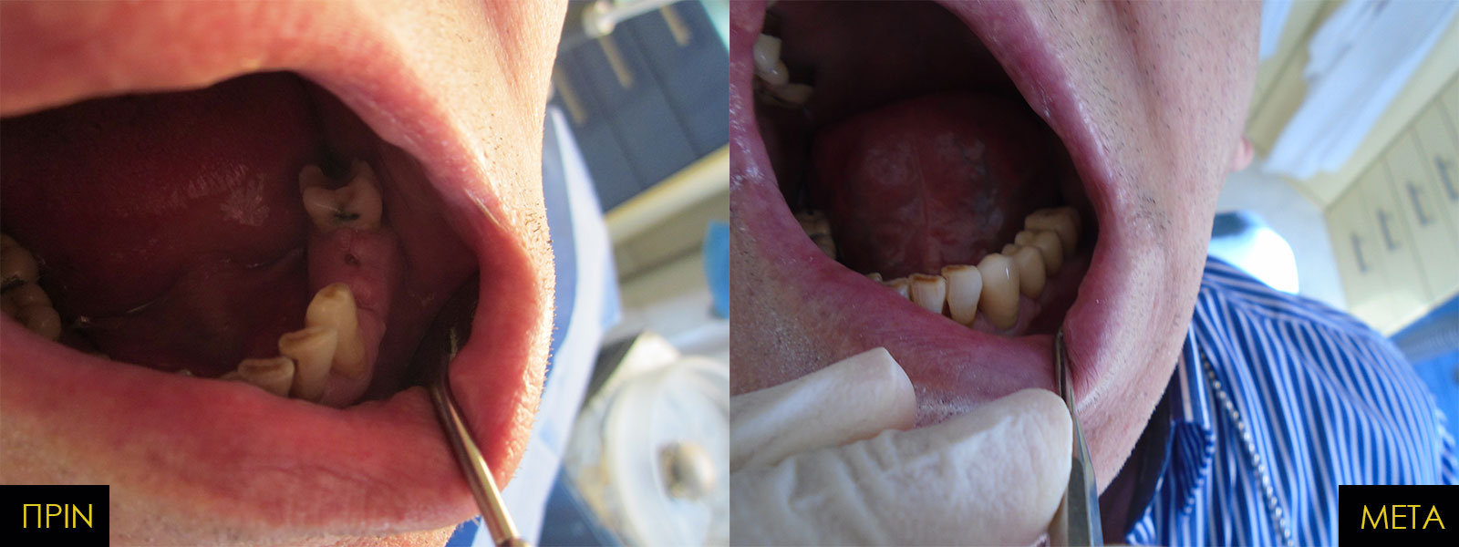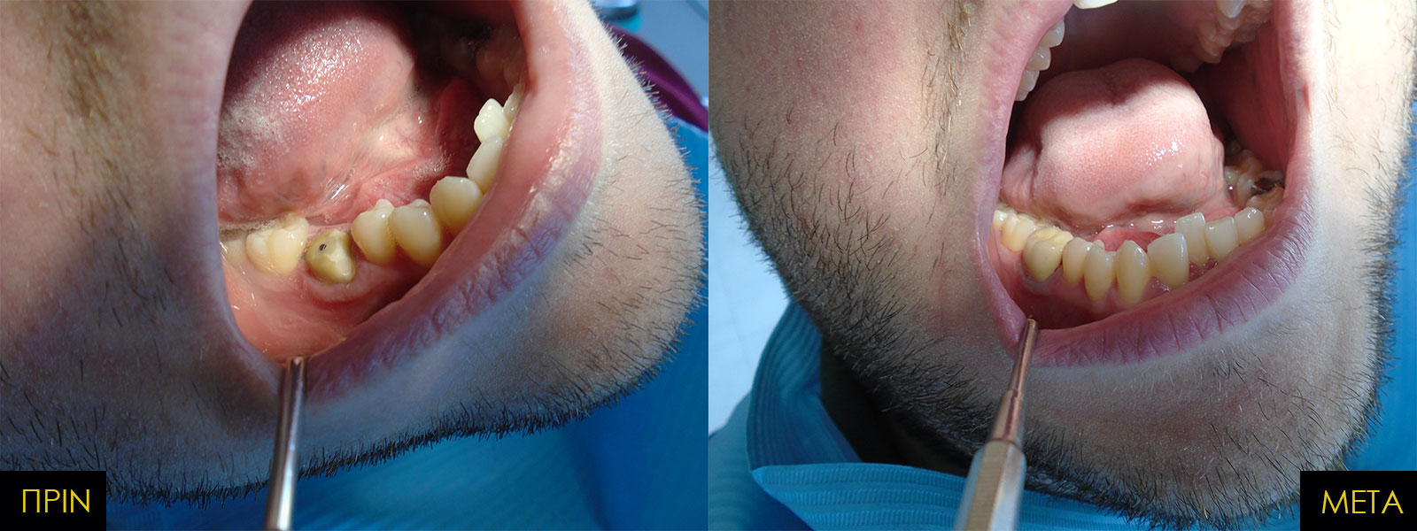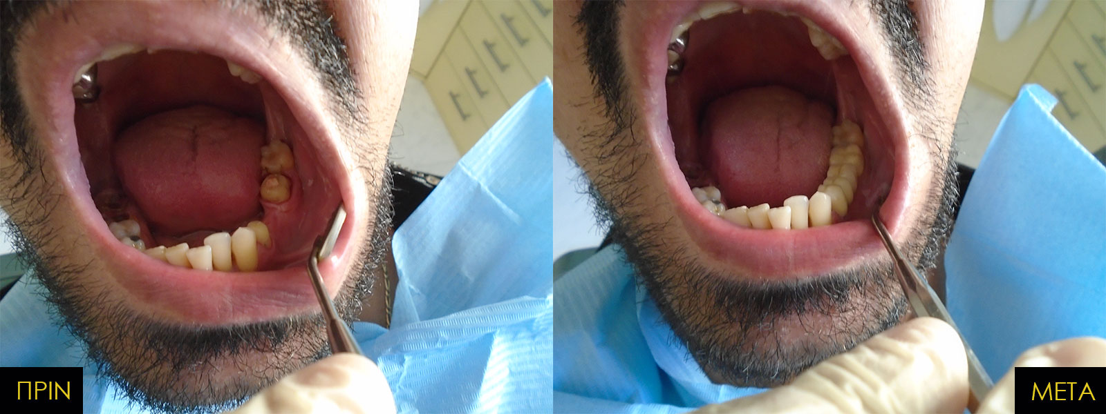 Ανασύσταση με 2 άξονες και 2 στεφάνες μεταλλοπορσελάνης στους 2 προγομφίους